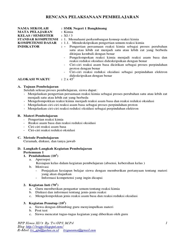 Berdasarkan rpp kurikulum 2013 dalam penyusunan baru, kebijakan baru yang ditetapkan dalam penyusunan rpp . Rpp 1 lembar redoks dan sel elektrokimia. Download rpp kimia 1 halaman / lembar (kelas x : • salirawati, das, fitria meilina, jamil suprihatiningrum. Mendesain dan melakukan percobaan reaksi redoks dan bukan redoks.
