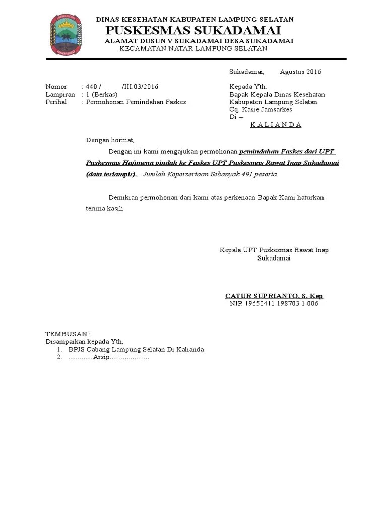 Itulah yang dapat kami bagikan terkait contoh surat permohonan pindah faskes bpjs. Untuk perubahan faskes diluar domisili harus melampirkan surat keterangan . Saat ingin pindah faskes, jangan lupa untuk . Ketahui cara online dan offline pindah faskes bpjs kesehatan di artikel. Peserta pindah rumah dan mengakibatkan jarak faskes dengan domisili.